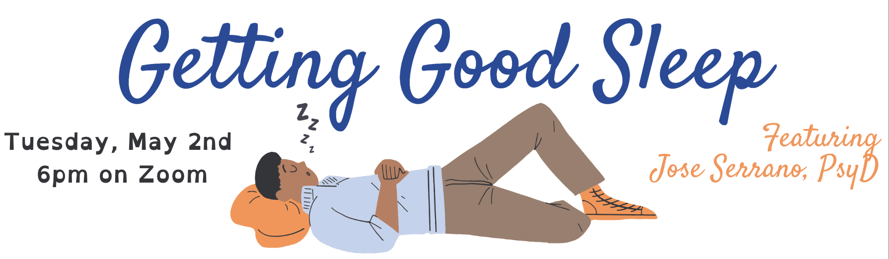 Jose Serrano, PsyD will describe how sleep works for our bodies and minds, along with some common sleep conditions; and he'll offer recommendations for practices to manage our our sleep.